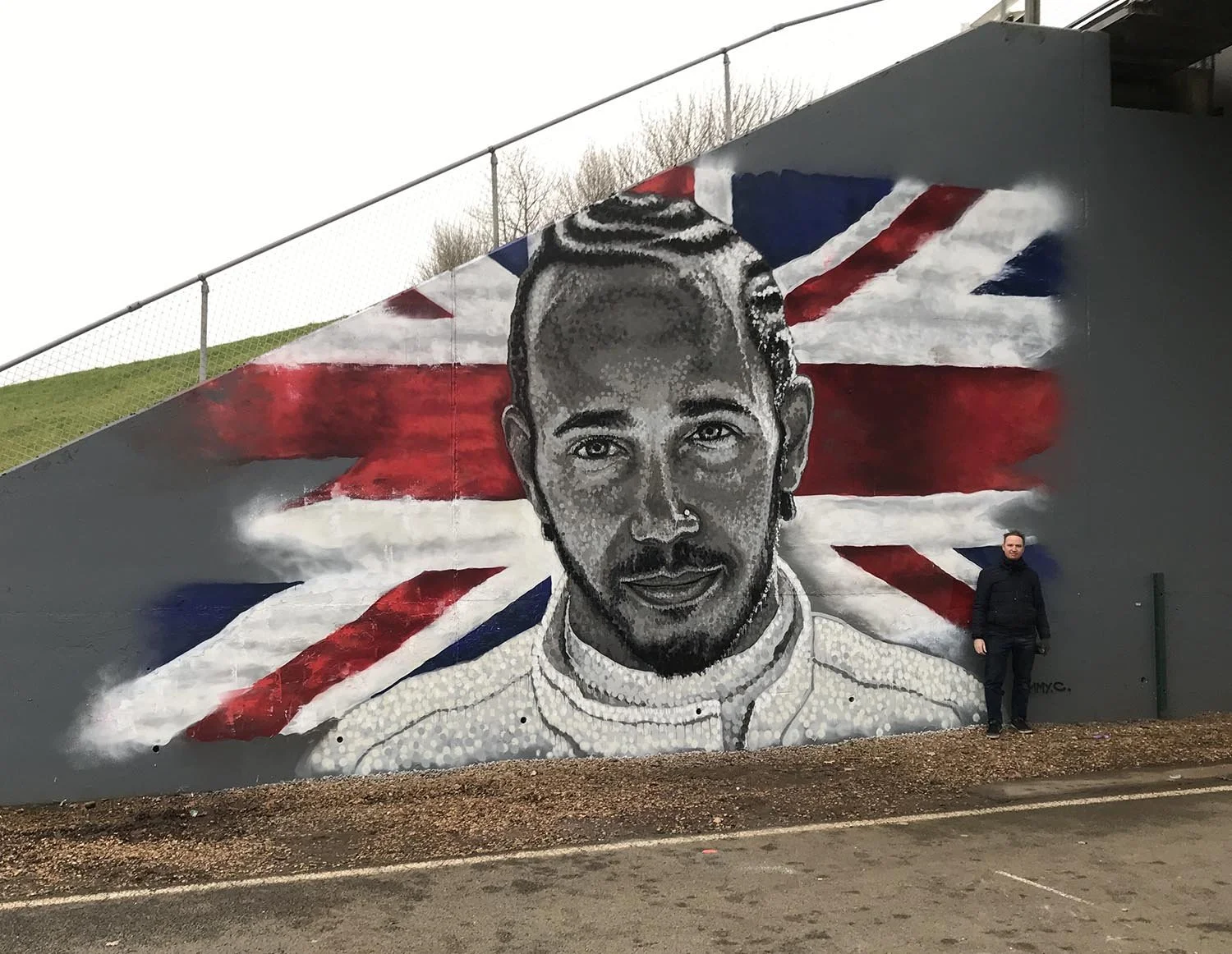 In 2019 Jimmy C was commissioned by Sky Sports F1 to paint a portrait of the British Formula One driver Lewis Hamilton at the Silverstone racing circuit. The video below captures footage of the wall being painted and was screened internationally during the The Abu Dhabi Grand Prix of the same year.